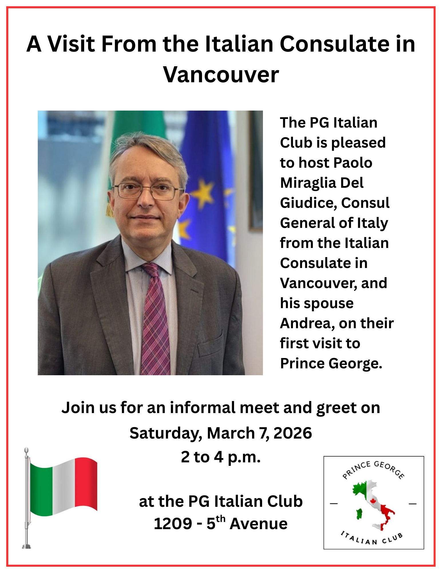 Please send information to Anna Monetta, Consular Correspondent for Northern BC contact via email amonetta@shaw.ca or 778-281-2845